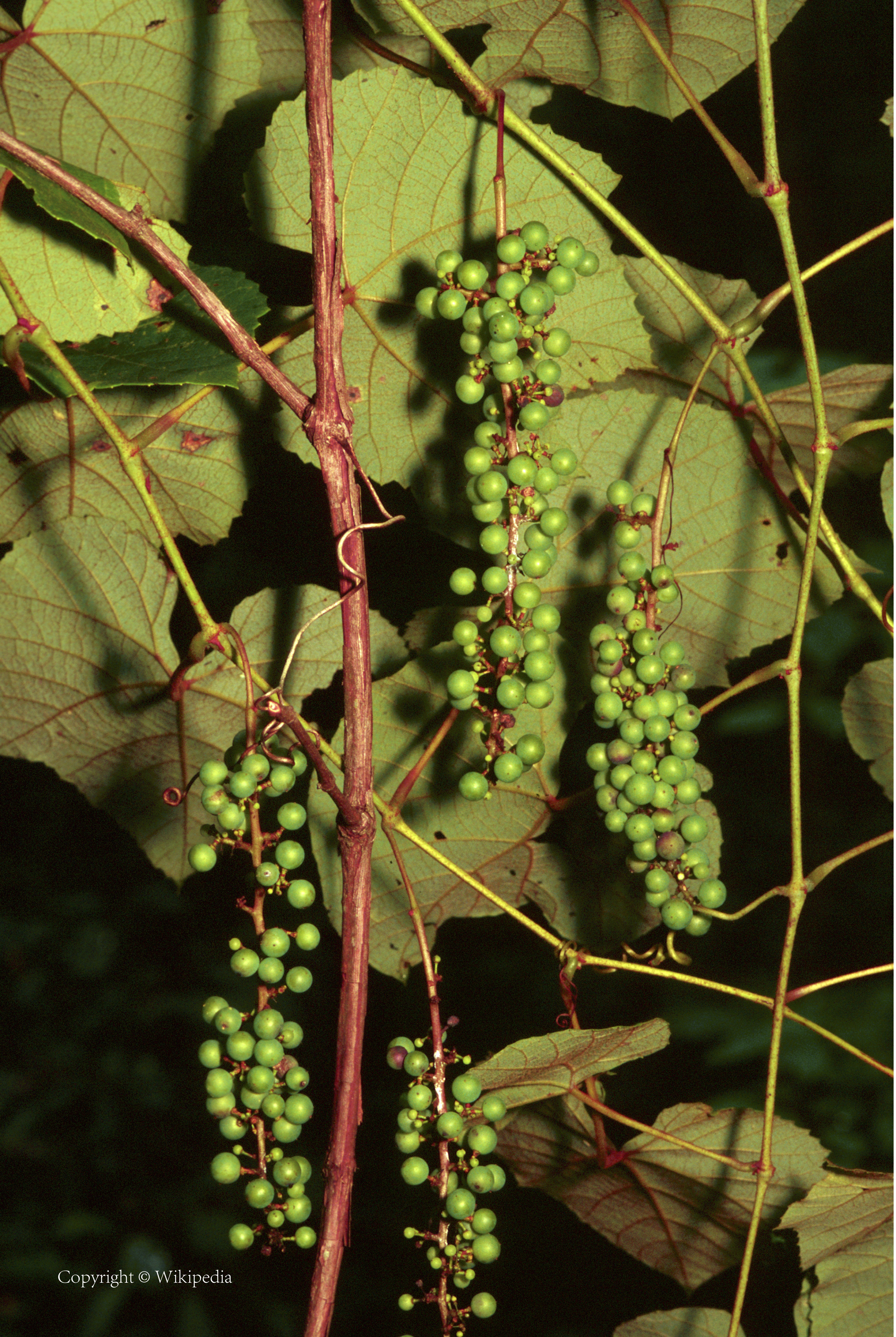 Plants high climbing, sparsely branched. Branches: bark exfoliating in shreds; nodal diaphragms 1–4 mm thick; branchlets terete, tomentose, arachnoid-floccose, or glabrous, growing tips not enveloped by unfolding leaves; tendrils along length of branchlets, persistent, tendrils (or inflorescences) at only 2 consecutive nodes; nodes not red-banded. Leaves: stipules 1–4 mm; petiole ± equaling blade; blade cordate to orbiculate, 7–25 cm, unlobed to 3-shouldered or 3–5-lobed, sometimes deeply so, apex acute to short acuminate, abaxial surface glaucous, ± arachnoid or floccose, visible through hairs, hairs usually rusty, sometimes whitish, veins and vein axils sometimes hirtellous, adaxial surface glabrous or puberulent. Inflorescences 7–20 cm. Flowers functionally unisexual. Berries black, glaucous, globose, 8–20 mm diam., skin separating from pulp; lenticels absent.